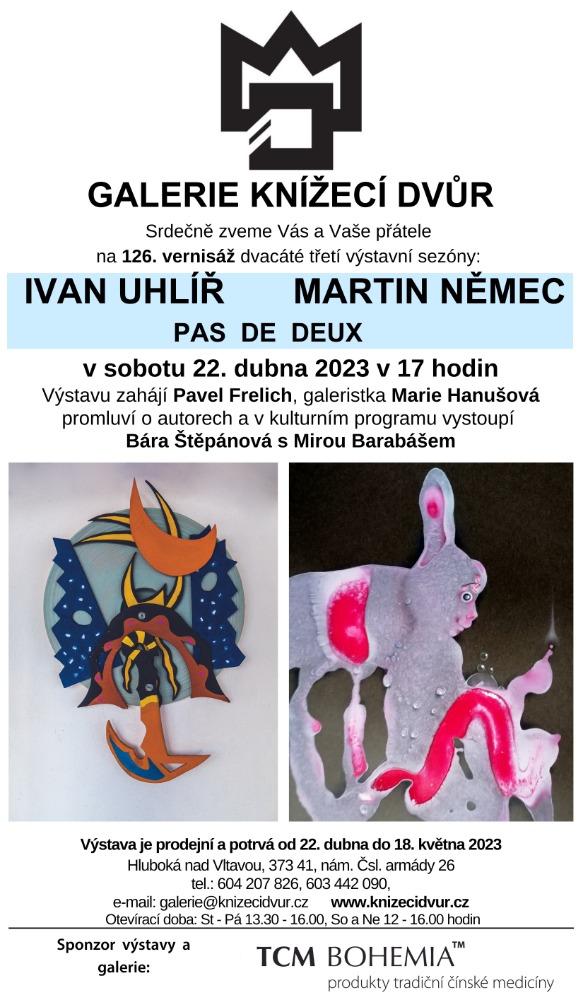 22. dubna se koná vernisáž obrazů Martina Němce a Ivana Uhlíře v Hluboké nad Vltavou – Galerie Knížecí dvůr.